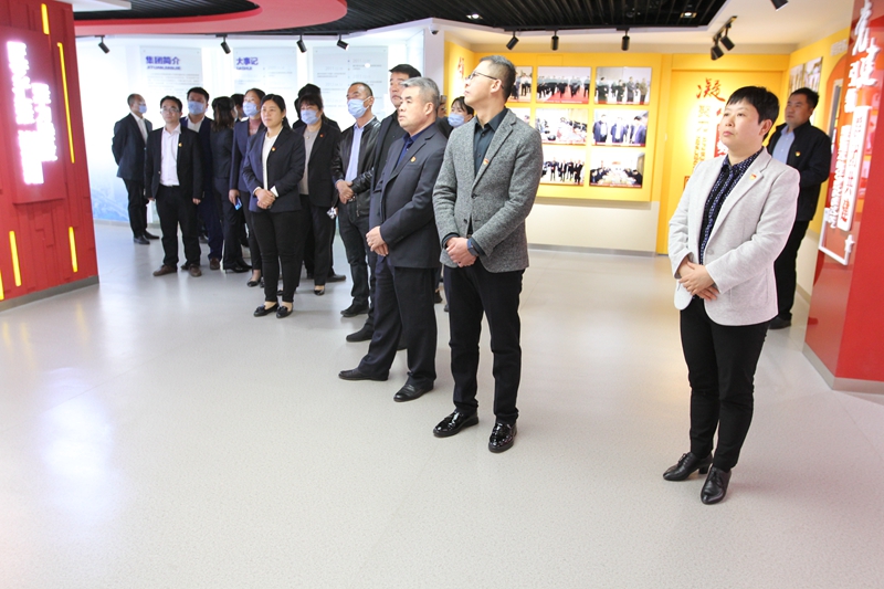 曹厚胜一行听取了滕投党群中心的整体介绍,重温了中国共产党的成立背景和辉煌历程,学习了党史、新中国史和改革开放史,领略了我市的红色革命记忆与城市历史变迁,感受了集团党建工作与生产经营的有机融合,详细了解了滕投发展历程、工程项目建设和特色亮点活动开展情况。