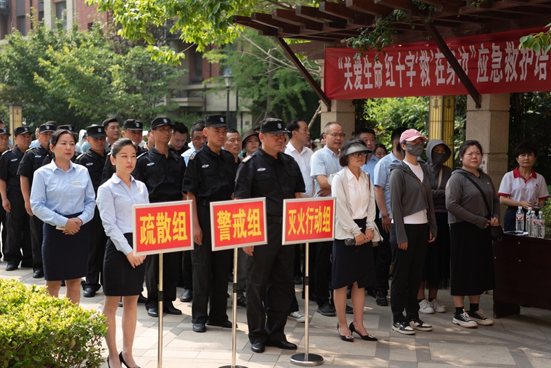 活动邀请到市消防大队消防员、市红十字会医疗急救人员、滕投集团各下辖住宅项目物业经理和安全专员、小区业主代表共同参加演练活动。