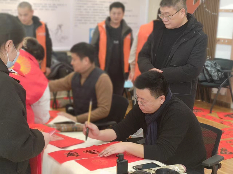 为更好地丰富小区居民文化生活,迎接欢乐、祥和的新春佳节,2月1日,滕投人和天地小区开展“翰墨飘香迎新春 纸墨书香送祝福”写春联送福字活动。 活动现场志愿者们提前就把春联纸、笔墨纸砚等准备齐全,为大家做好书写服务。书法协会书法家们一早来到小区,挽袖执笔,挥毫泼墨。红纸为底,黑墨为字