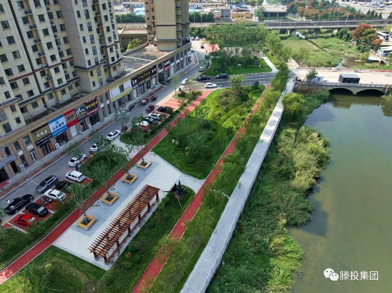 在滕州,有一种幸福,叫做家门口的公园。临近中秋、国庆双节,滕州大同印象沿河口袋公园建成启用。该项目由滕投集团山东天行健发展有限公司投资,滕投集团旺禾园林公司施工建设。占地面积约9200平方,计划投资约460万元,于2023年3月份开工建设,2023年国庆节前向市民开放。(大同印象沿河口袋公园全景)项目现场,旺禾园林