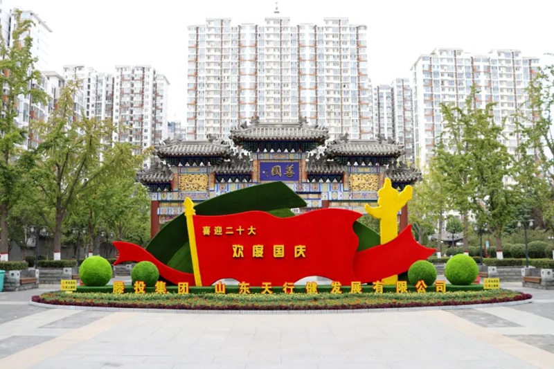 9月24日,滕投集团天行健发展公司在九州清晏老县衙广场布置的一座大型花坛绿雕吸引众多市民驻足观看,为广场又增添了一道靓丽的独特风景线。该花坛以“喜迎二十大 欢度国庆节”为主题,高5米、长16米,由一万余株花卉绿植簇拥而成,层次分明,错落有致。既有寓意“万众一心、欣欣向荣”的国庆菊,又有体现“永远跟党走、共建