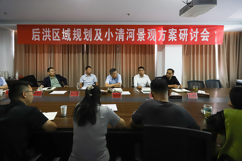 9月22日,后洪区域规划及小清河景观方案研讨会在滕投集团召开。滕投集团董事长侯钦军,总经理李自海,副总经理李正春、赵海军、黄建民,工会主席王洪全及项目相关负责同志参加会议。 此次研讨会共分为桥梁设计、住宅区域设计、景观设计三个板块,五家设计公司分别以位置分析、现状分析、效果展示为切入点,汇报