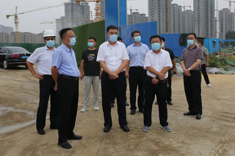 8月10日,市委常委、政法委书记刘庆东,市委政法委分管日常工作的副书记朱瑞国,市社会治理综合服务中心主任谢凯一行来小岗区域改造项目督导疫情防控和生态环境保护工作。北辛街道党工委书记马金安,集团董事长方玉新参加活动。刘庆东详细察看了项目疫情防护措施及建筑工地扬尘治理等工作情况,并对相关工作给予充分肯定和高