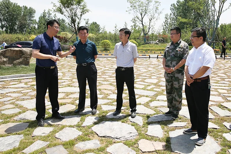 6月1日上午,枣庄市“山水林田大会战”指挥部办公室专职副主任、林业和绿化局一级调研员龙厚宏一行8人,到七星湖湿地公园实地督查“山水林田大会战”活动开展情况,市政府副市长张传纲、市政府办公室主任颜丙磊、市自然资源局局长、市林业和绿化局局长马兆鹏、市林业事业发展中心主任赵曰理 、滕投集团董事长方玉新陪同调研